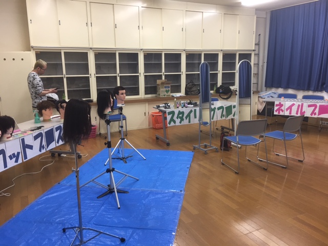 近辺にあるヘアーサロンの理美容師さんが、生徒さんに理美容師の仕事をちょっと教えて体験してもらう内容です。